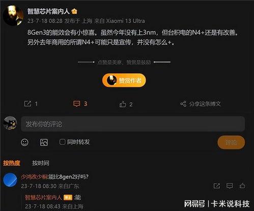 亲爱的科技迷们,你是否已经迫不及待地想要一睹骁龙8G3的真容?没错,这款被业界誉为“未来旗舰”的处理器,最近可是曝光不断,各种神秘的面纱被一层层揭开。今天,就让我带你一起深入探索骁龙8G3的最新爆料,看看这款处理器究竟有何过人之处。